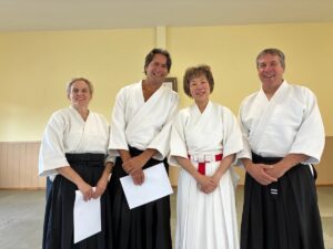 I had just become a 2nd Dan when I became pregnant, and once I had my daughter things changed and I didn’t have the possibility anymore to get to regular classes. I was busy with my family and work for a number of years. I used to think about Aikido, but it was hard to imagine getting back into it – I used to dream sometimes of stepping onto the mat and everyone turning to look at me in horror!
