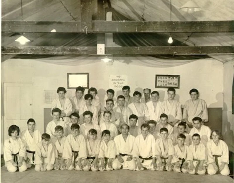 The first image shows the inside of The Hut, where it all started. Abbe Sensei is in the middle in the front row, with Sensei Williams on his left.