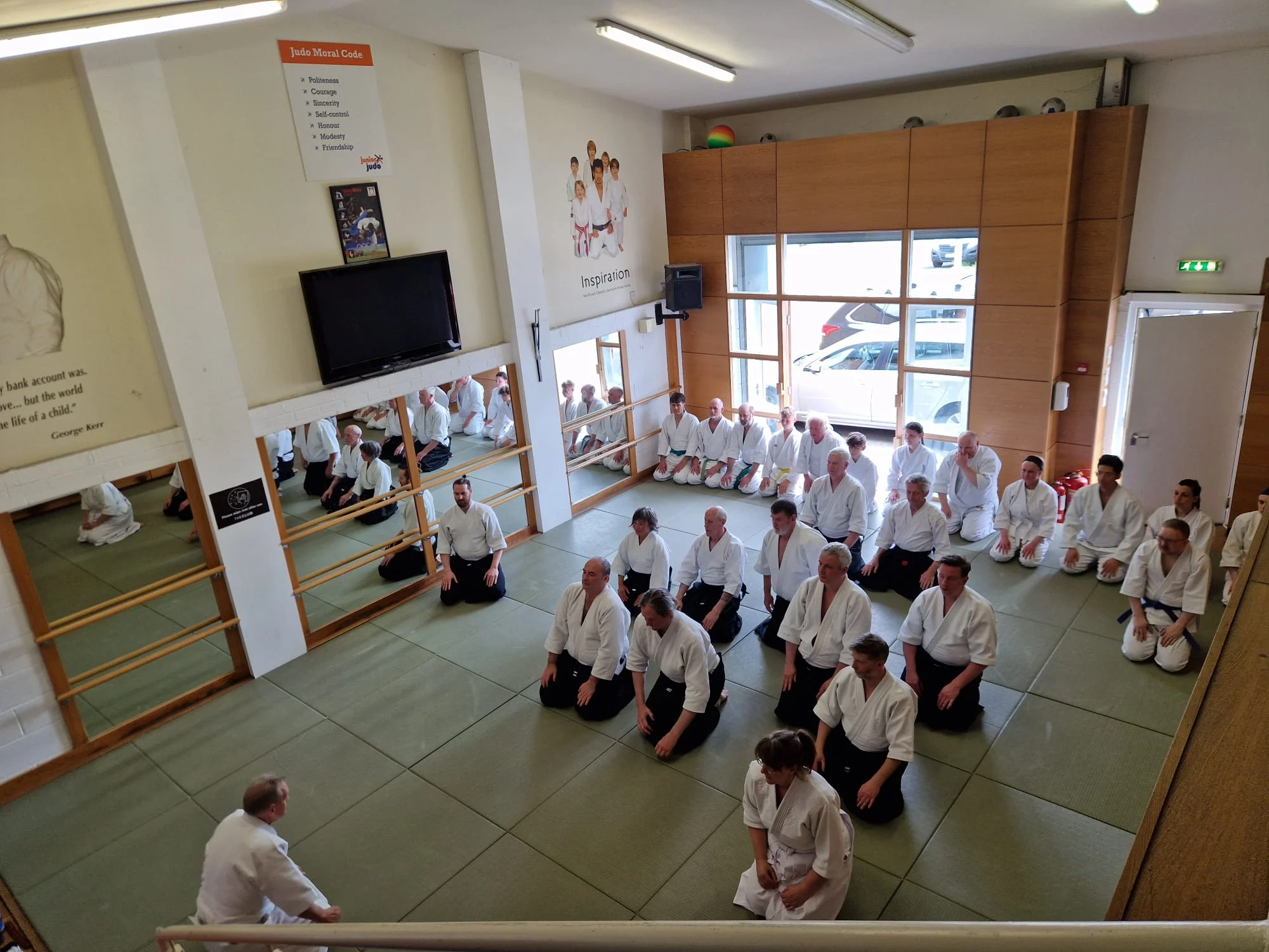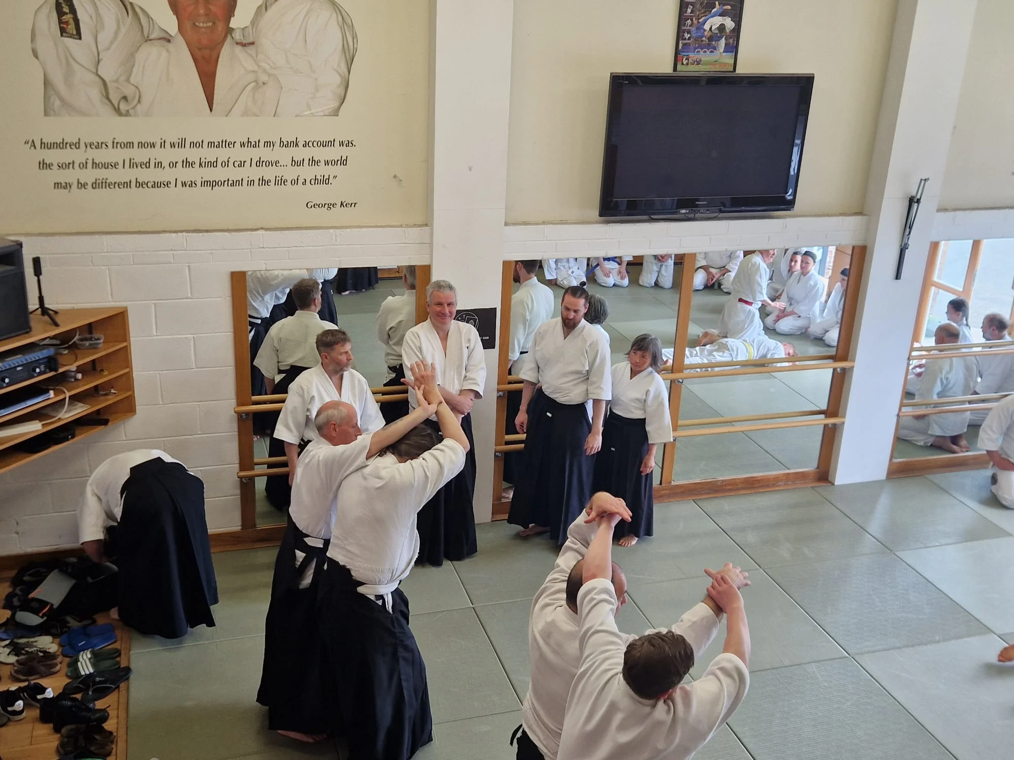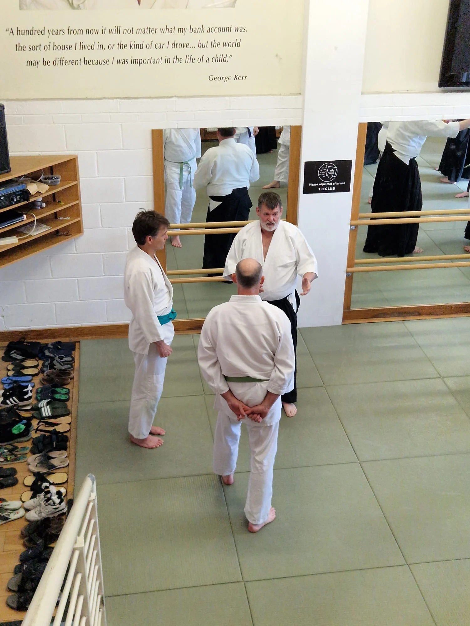 Sensei Ben Docherty a accueilli Sensei O'Connell lors du tout premier stage organisé par le club d'Édimbourg (avec l'aimable autorisation du club de judo de George Kerr). Le tatami était bondé, car tous les clubs écossais s'étaient réunis, et le stage s'est terminé en beauté par une série de passages de grades réussis.