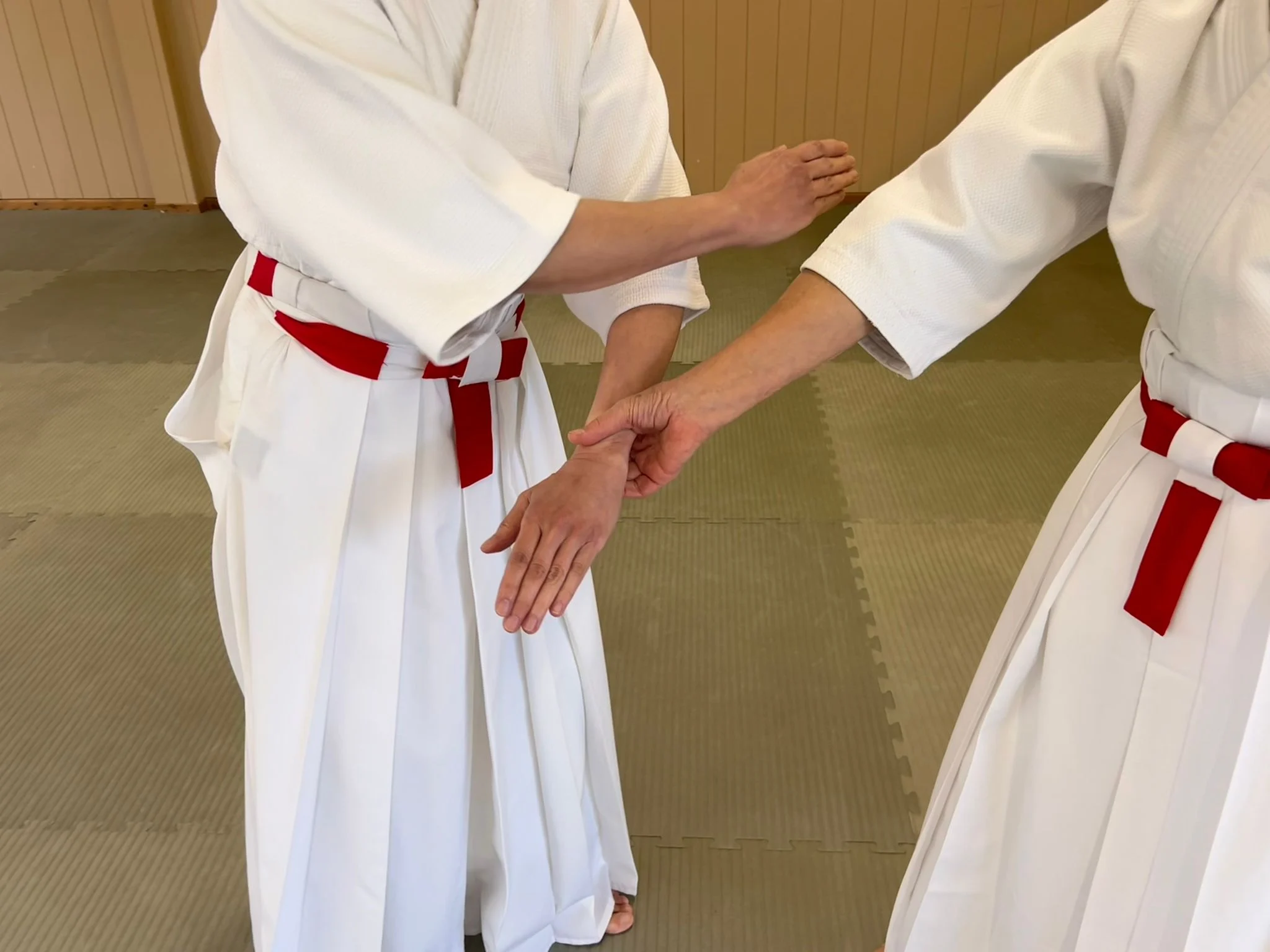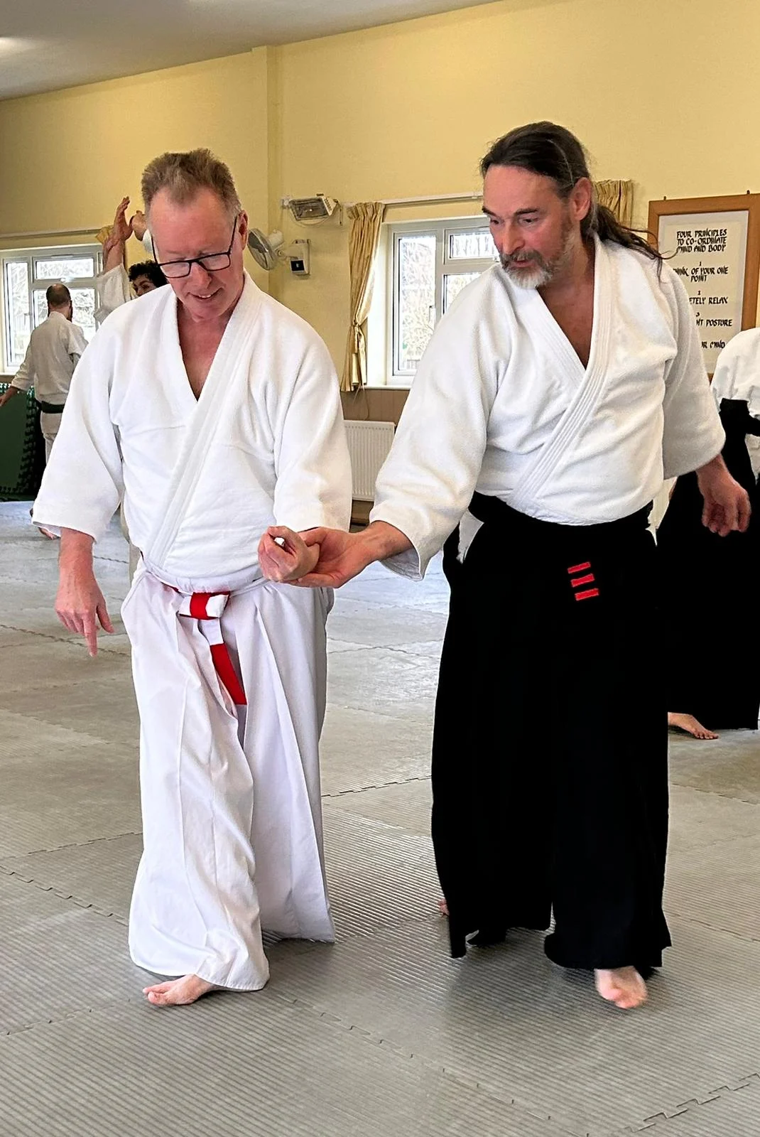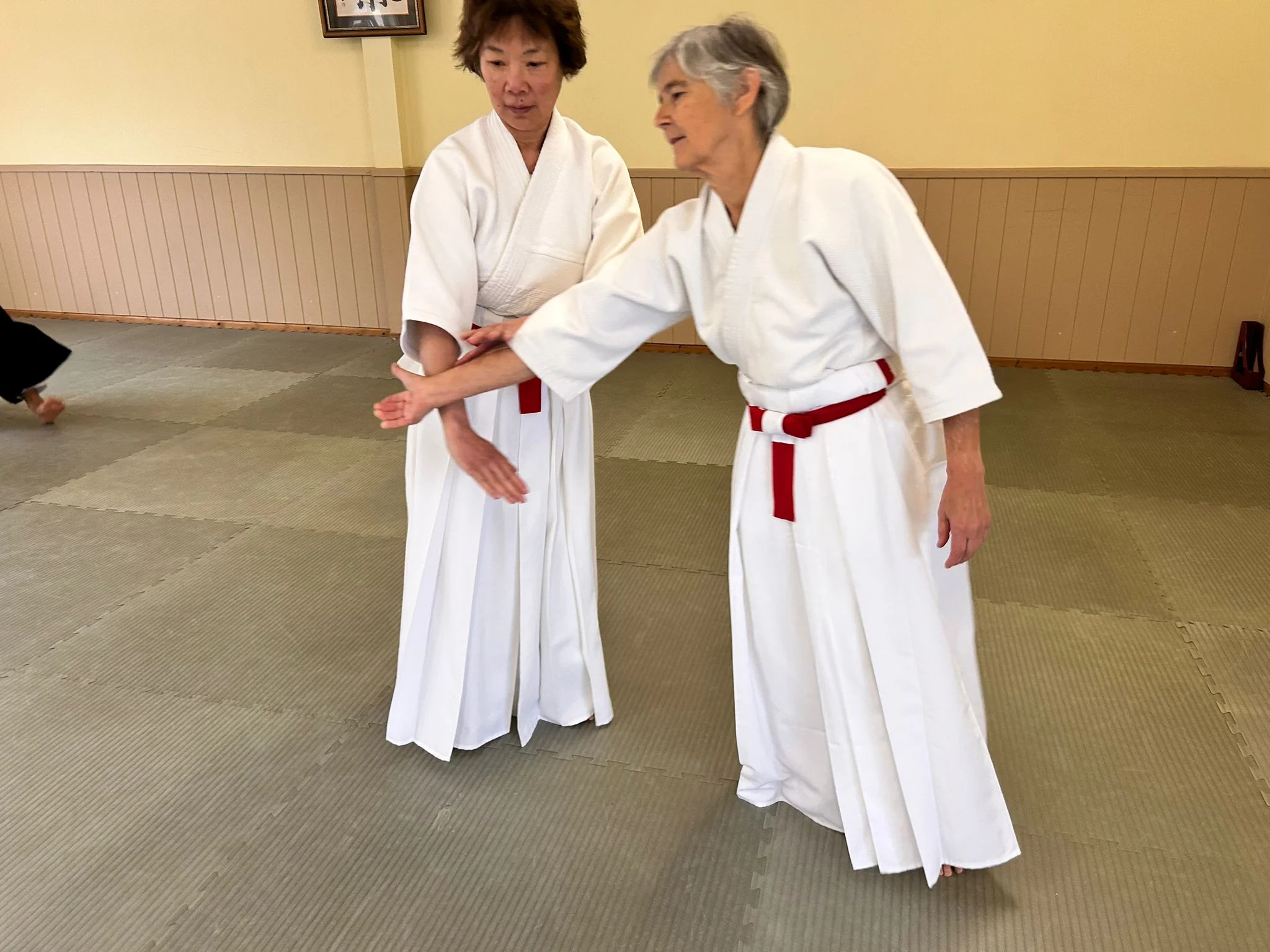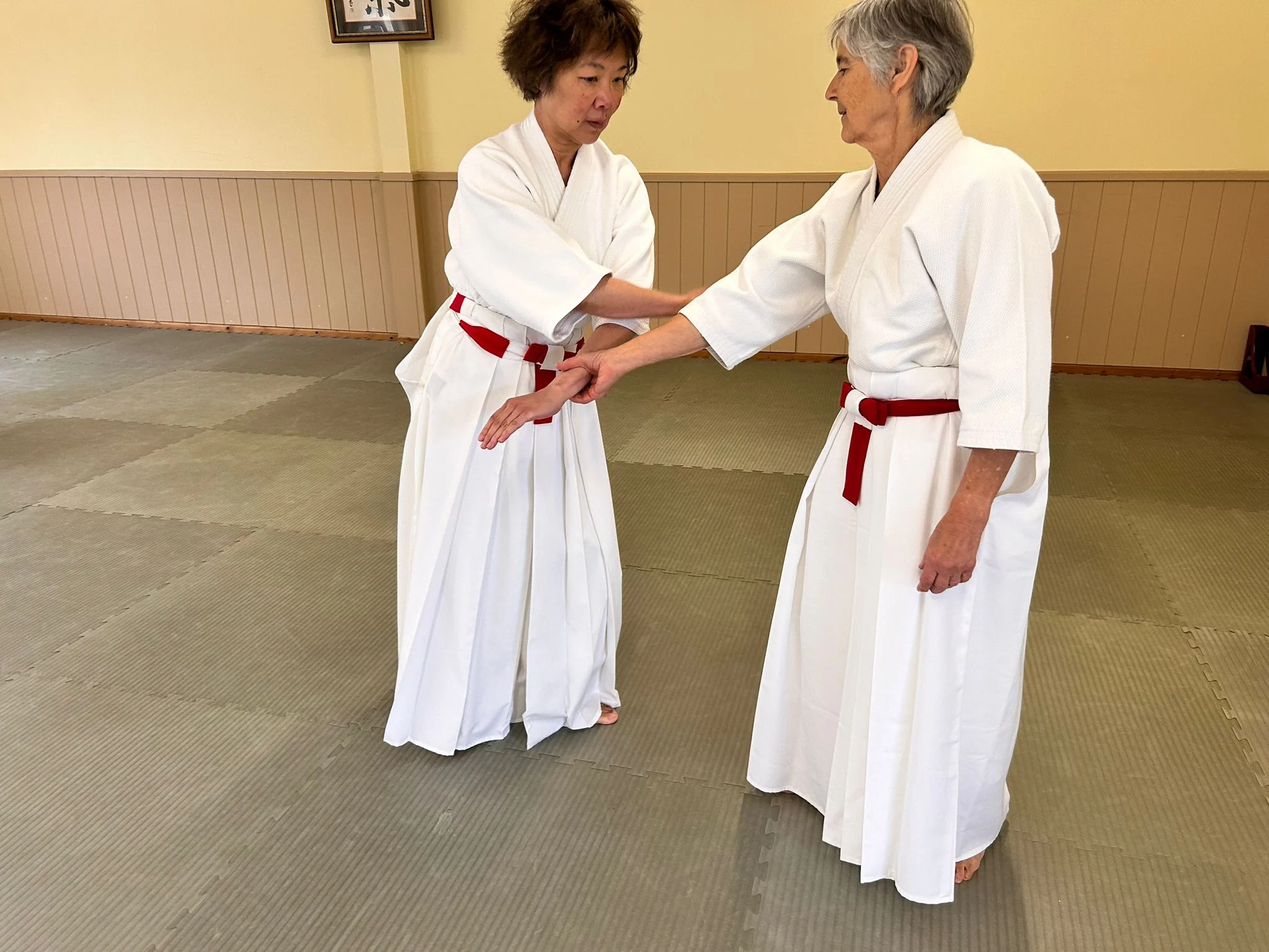 Sensei Cornish démontrant le kotegeishi avec Sensei O'Connell