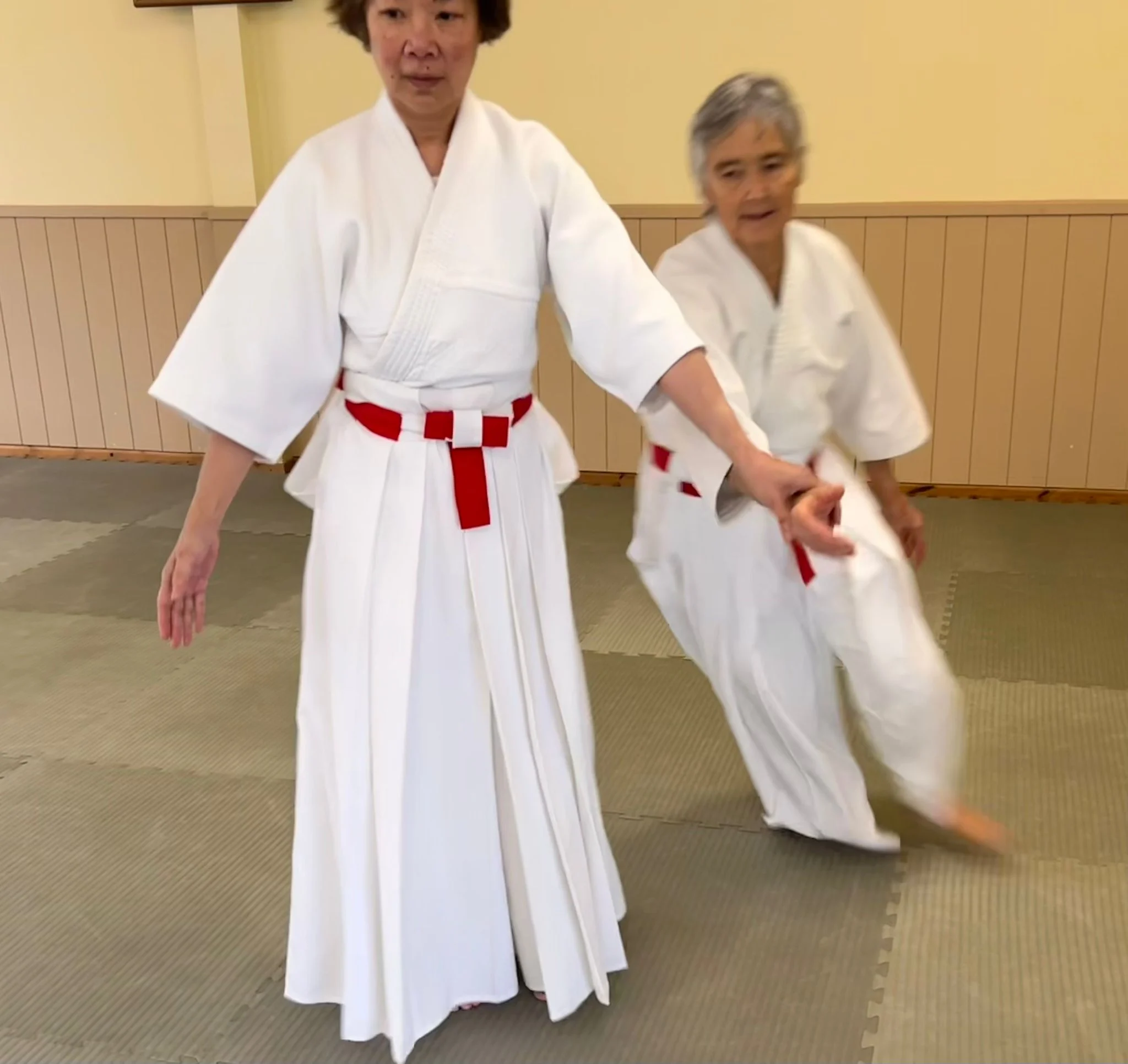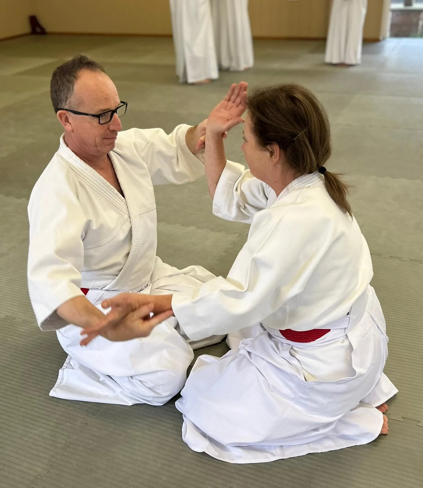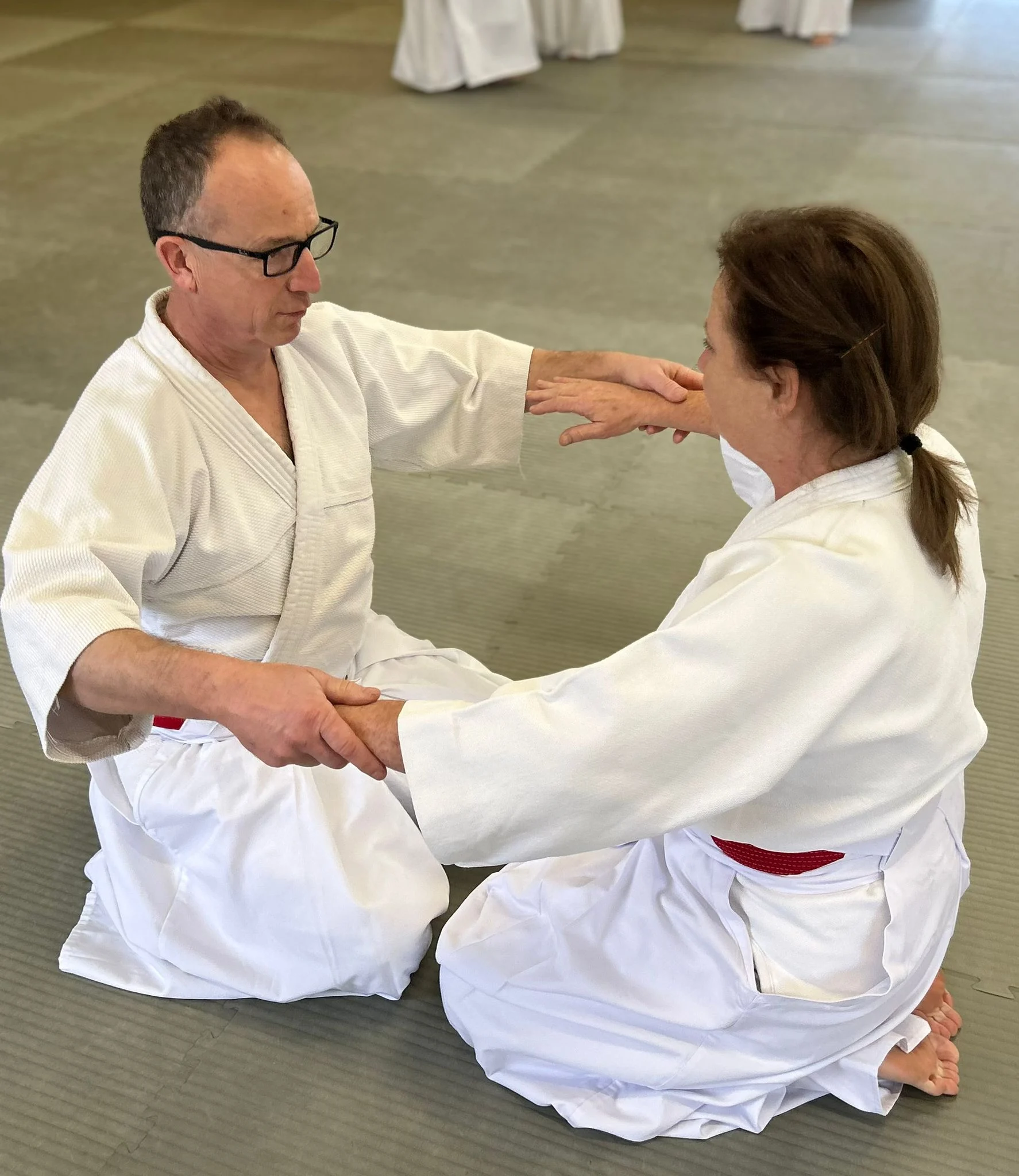 Sensei Cornish pratiquant la deuxième forme kotegeishi avec Sensei O'Connell