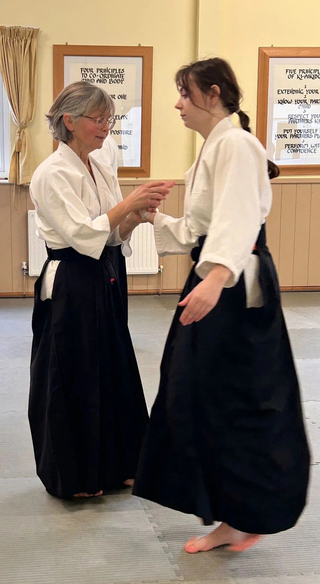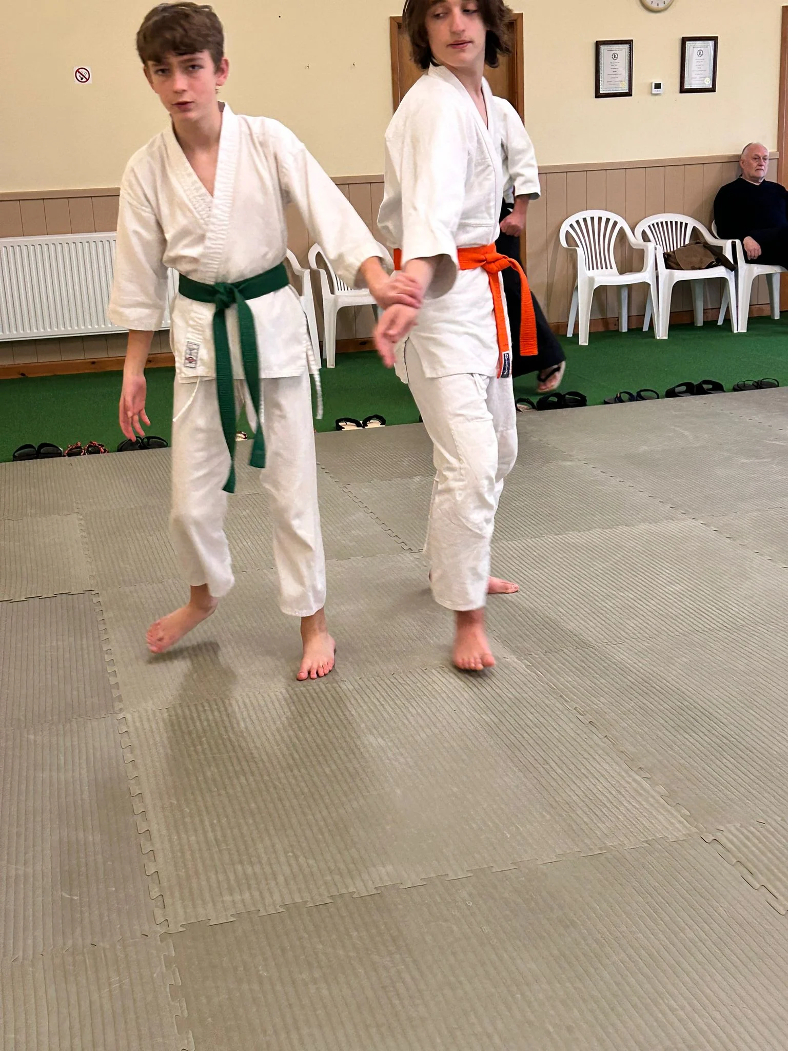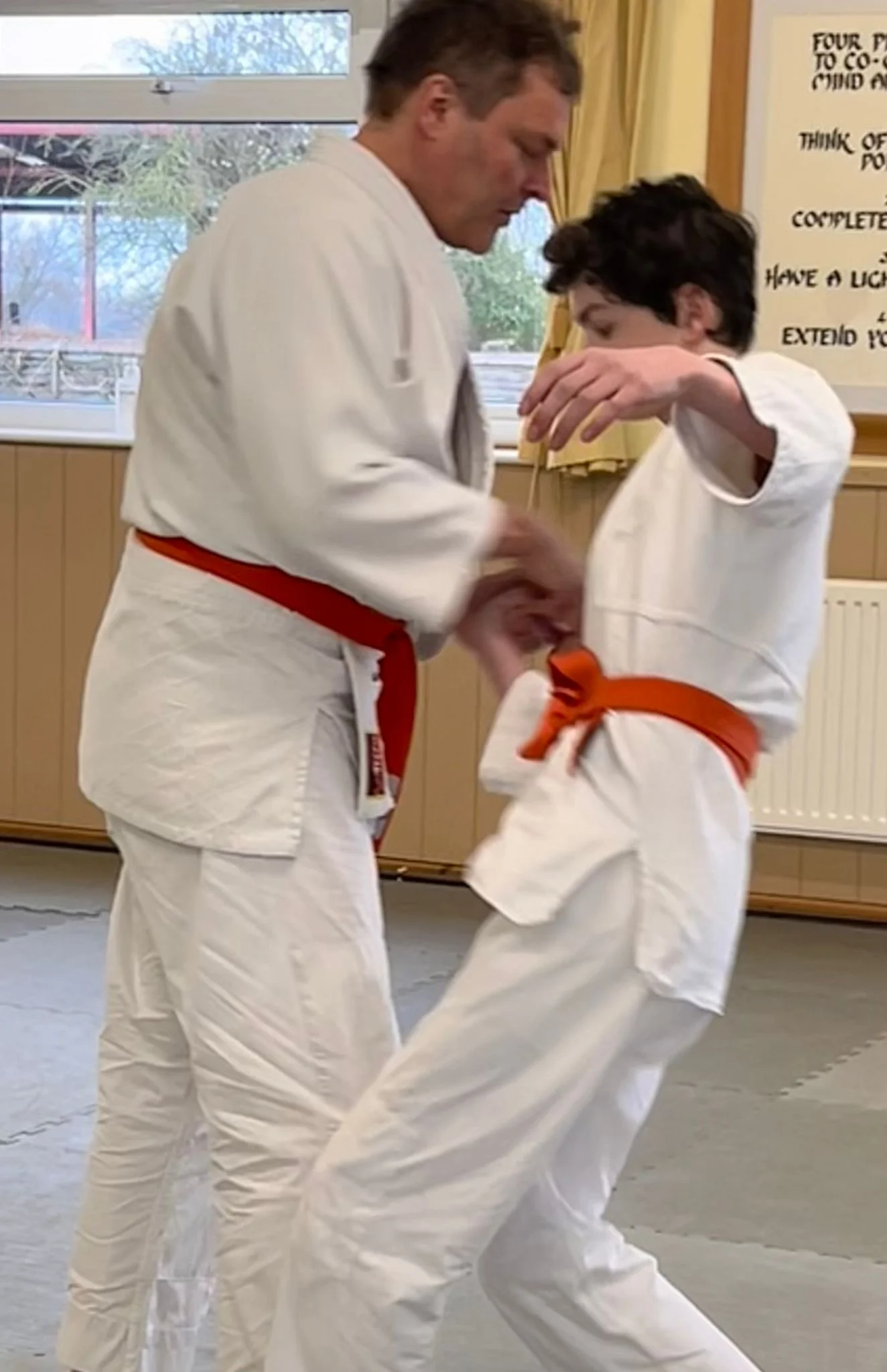 Sensei Cornish pratiquant la deuxième forme kotegeishi avec Sensei O'Connell