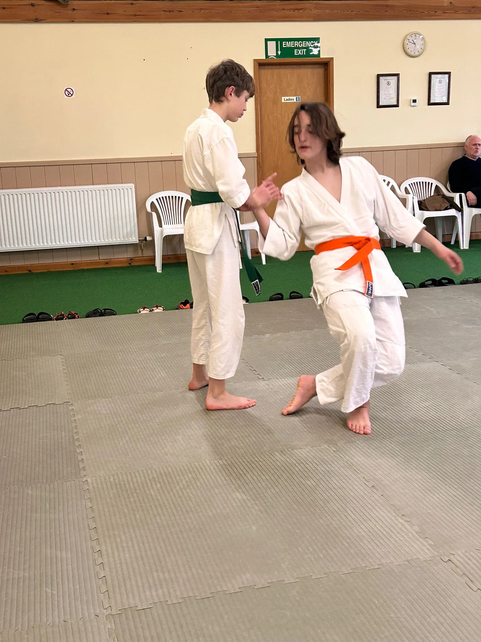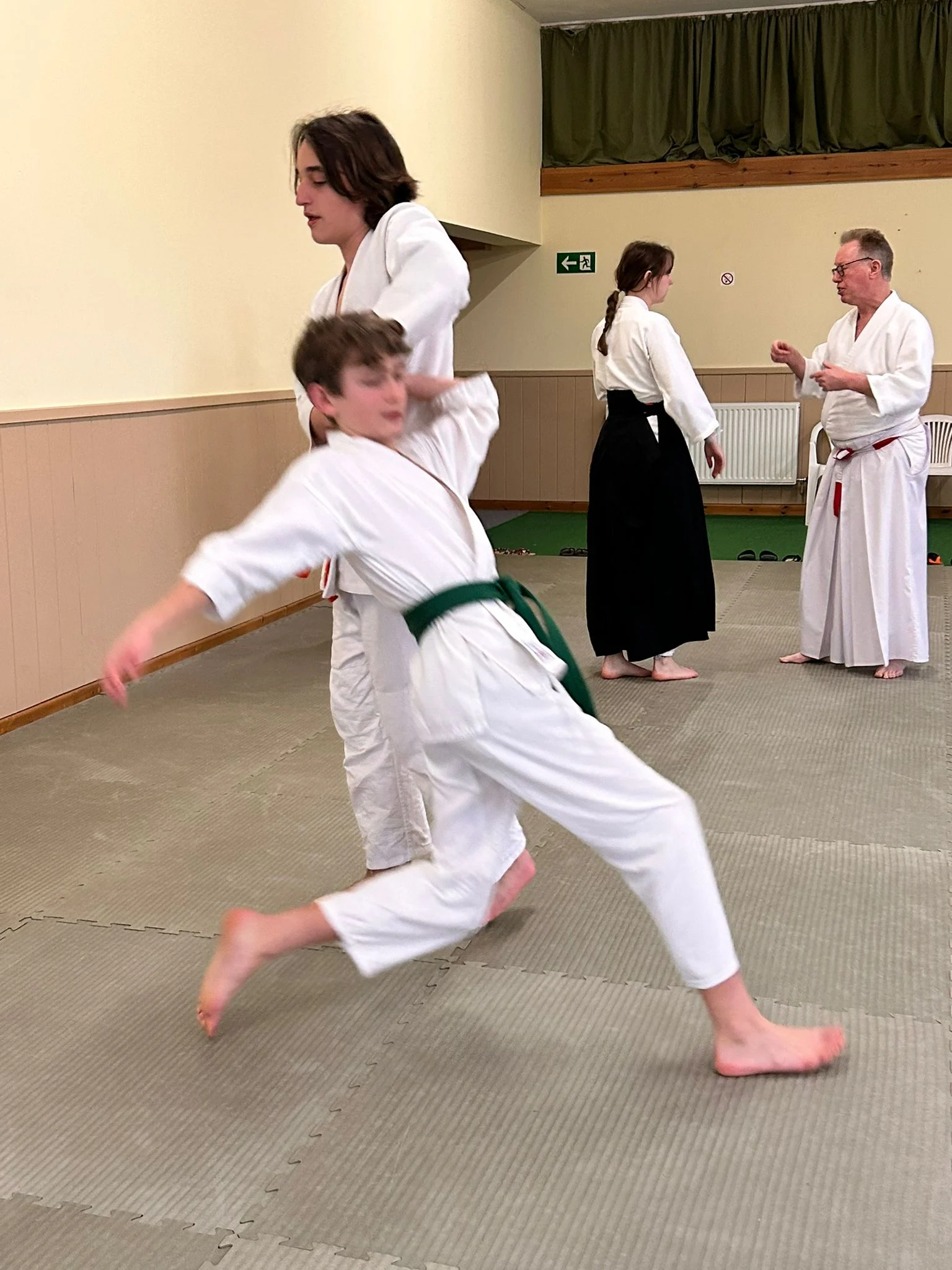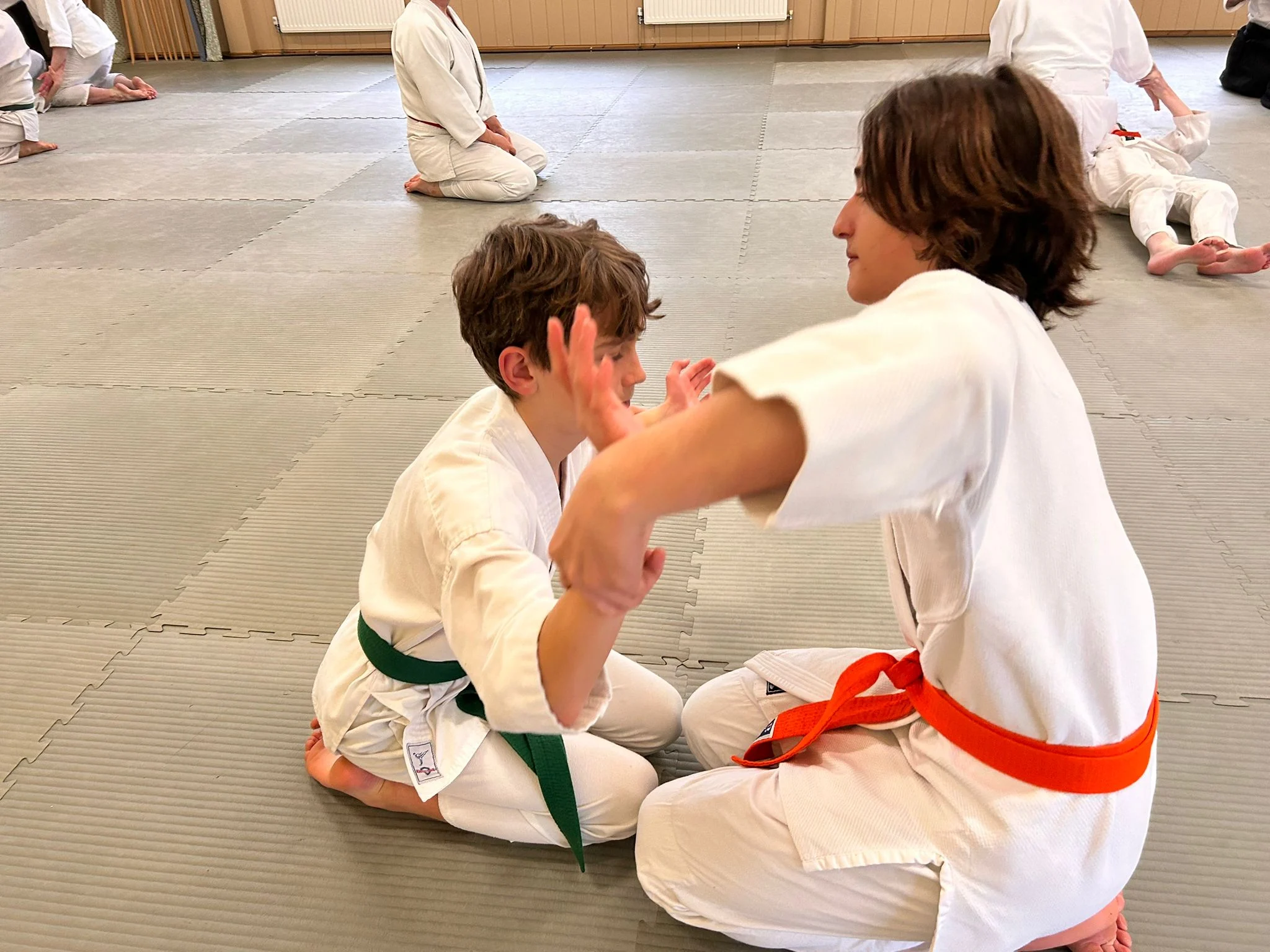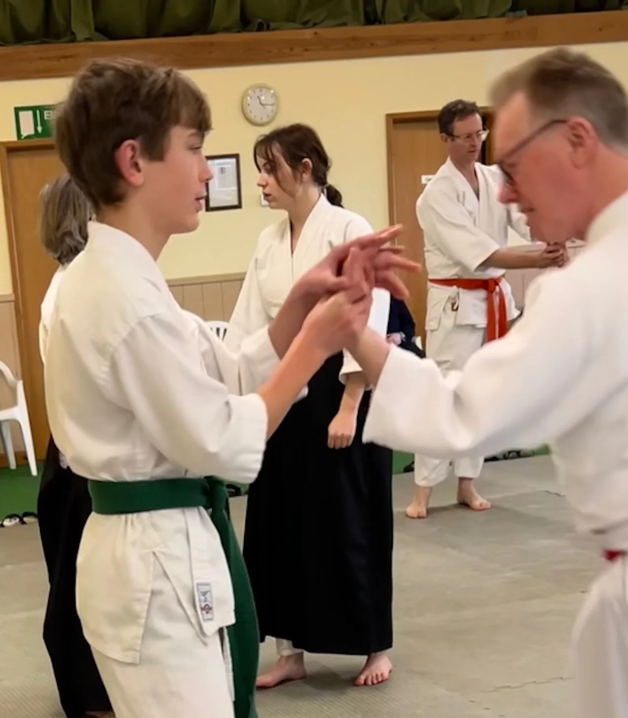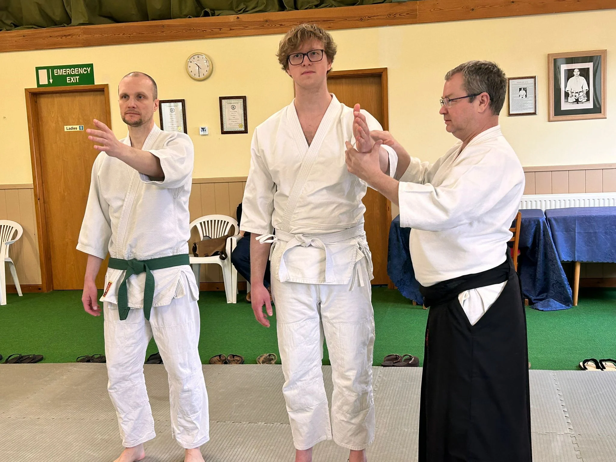 Le week-end dernier a eu lieu le premier cours et le premier examen de kyu de l'année. Les élèves ont étudié les tests de développement du ki, tels que le bras inflexible, avant de passer au développement du ki en action – le premier exercice de ki, le kokyu-dosa à genoux.