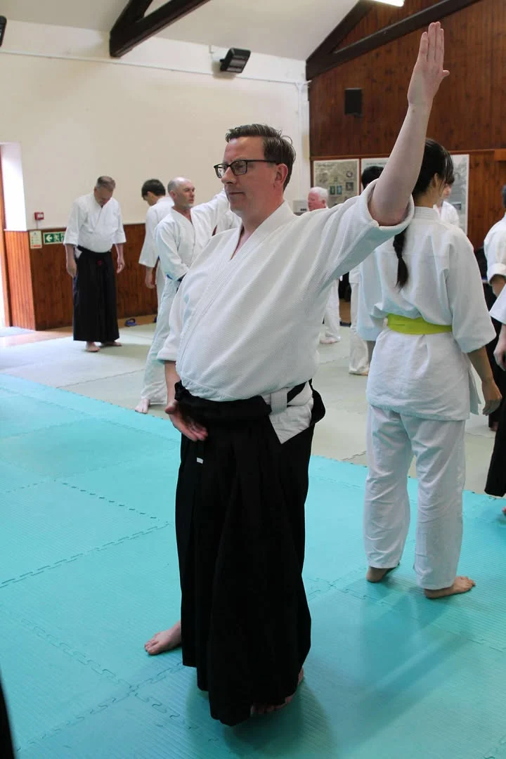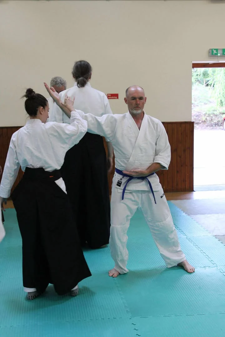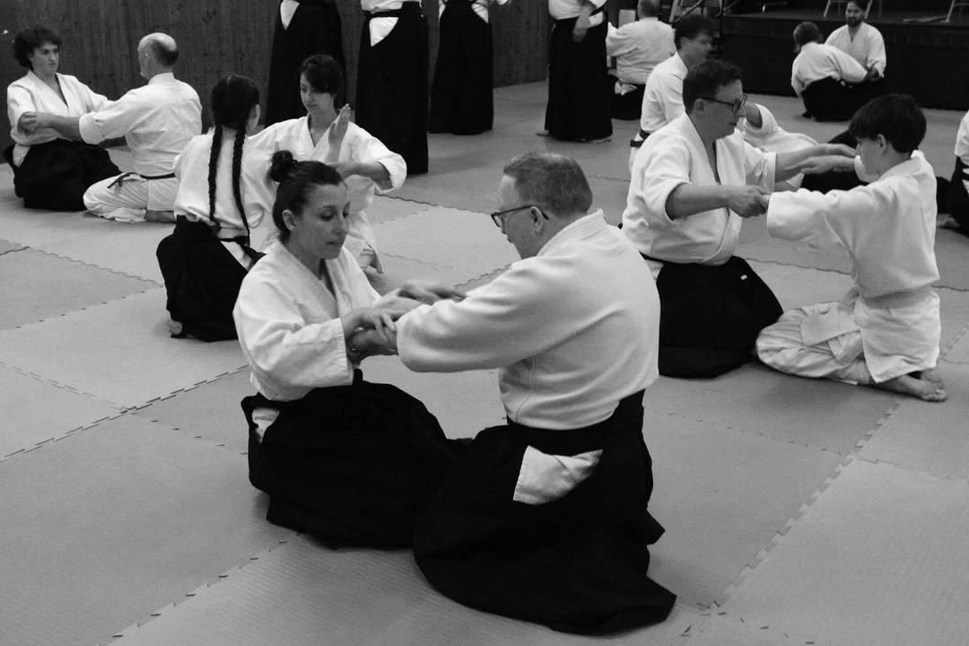 Nous avons passé beaucoup de temps sur des exercices de développement du ki, tels que des roulades et des exercices latéraux, en mettant l'accent sur l'élargissement de l'esprit. Le deuxième jour, nous nous sommes concentrés sur le guidage et le suivi afin d'améliorer l'ukemi. Ces exercices ont été entrecoupés d'exercices d'aïkido afin de mettre en pratique les points étudiés.