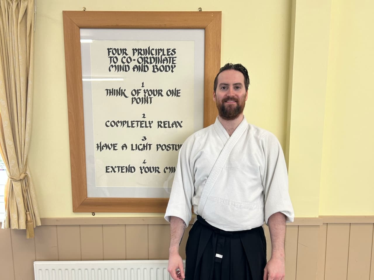 Sensei Ben Docherty begon al op jonge leeftijd en richtte tien jaar geleden de Edinburgh Ki Aikido Club op. Met zijn 33 jaar is hij waarschijnlijk de jongste 5e dan in de federatie.