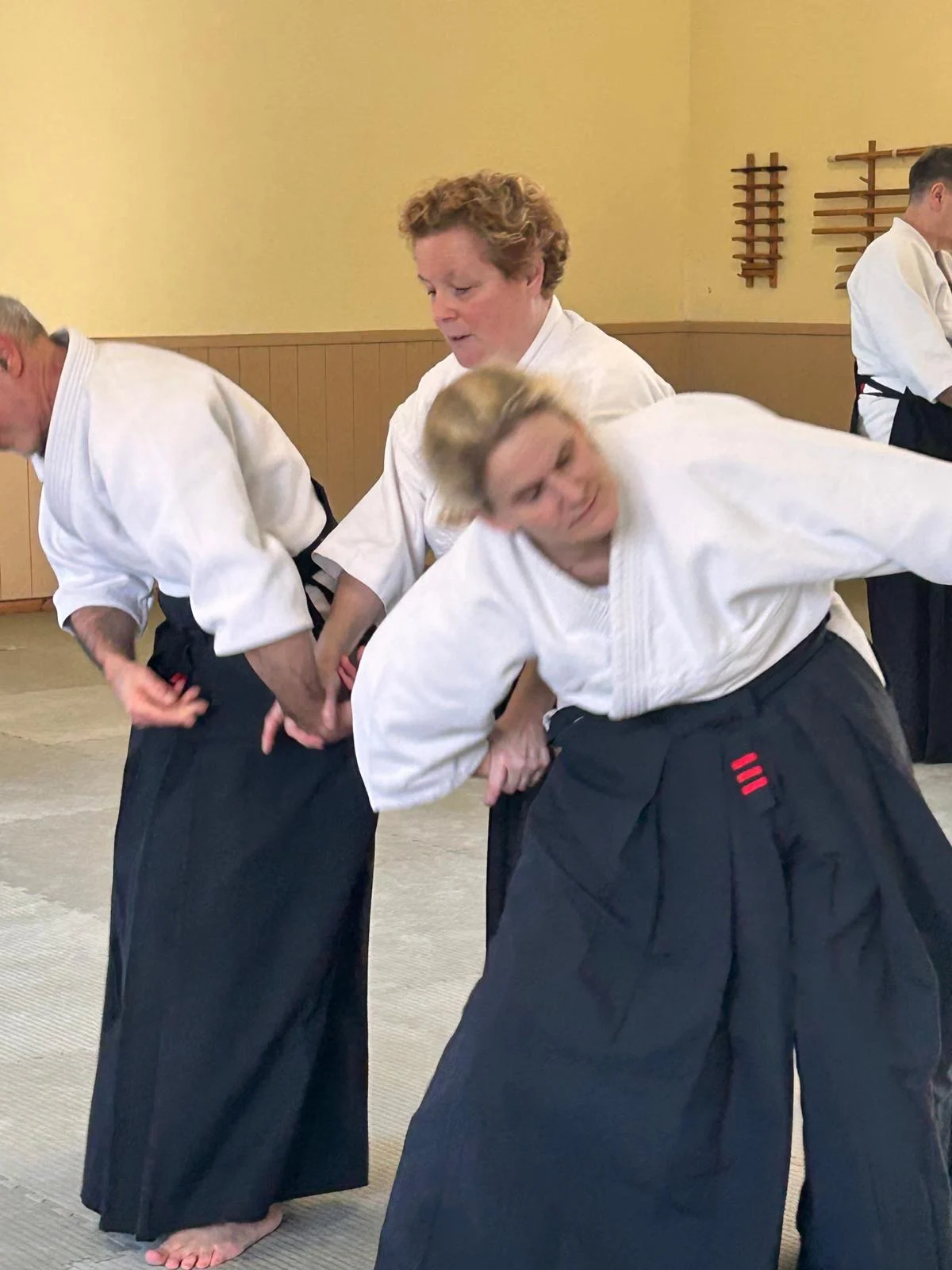 It was a great weekend at the 3rd and 4th Dan group course. It was particularly good to see French and Dutch members on the mat. They always bring a delightful je ne sais quoi! Members studied two-partners-holding and Jo exercises. We are grateful to Sensei O’Connell for another fascinating weekend of instruction, and to Sensei Peter Baillie for sorting everything behind the scenes.
